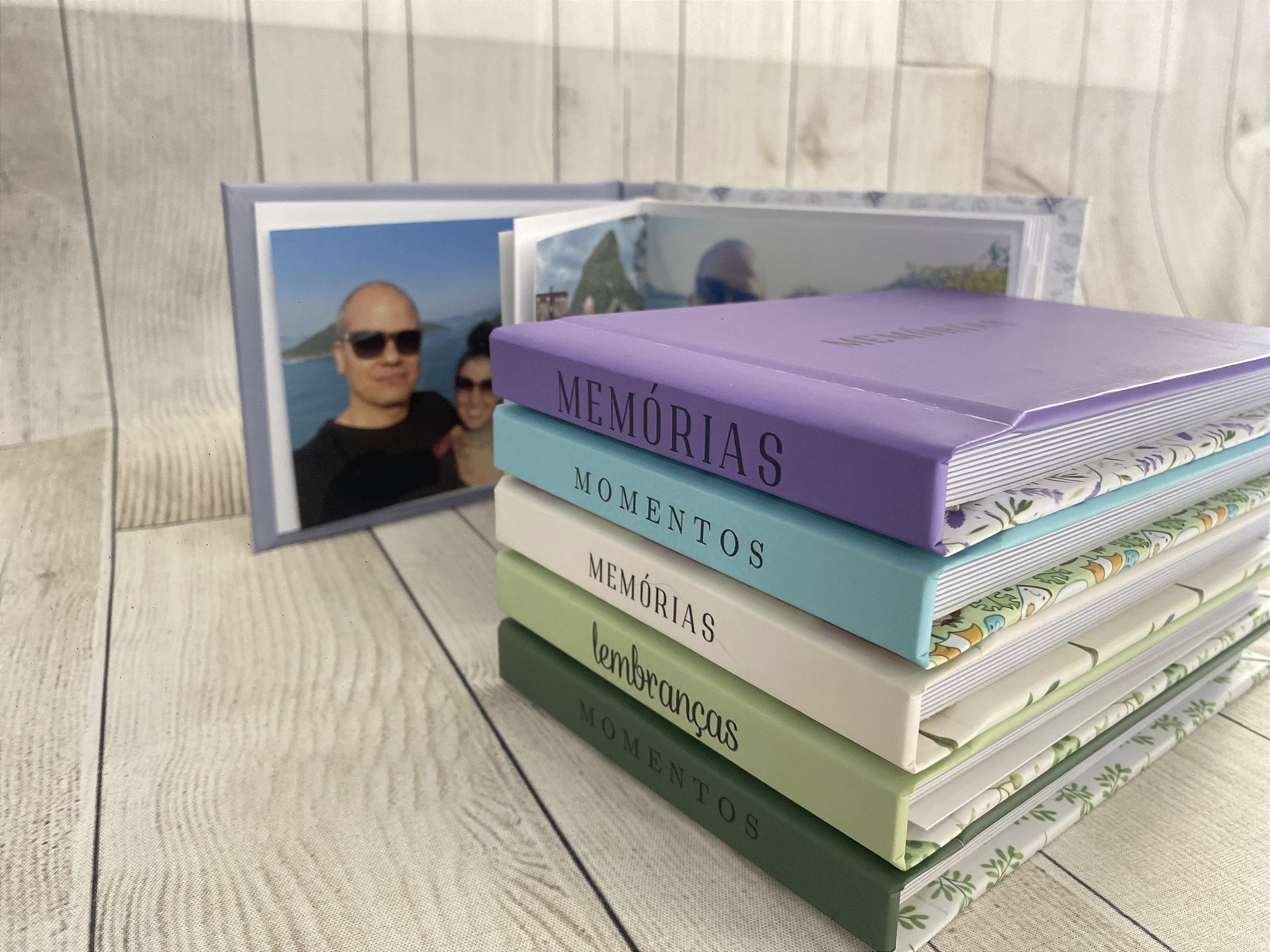 Álbum de colagem já personalizado com 20 fotos 10x15 de sua escolha.